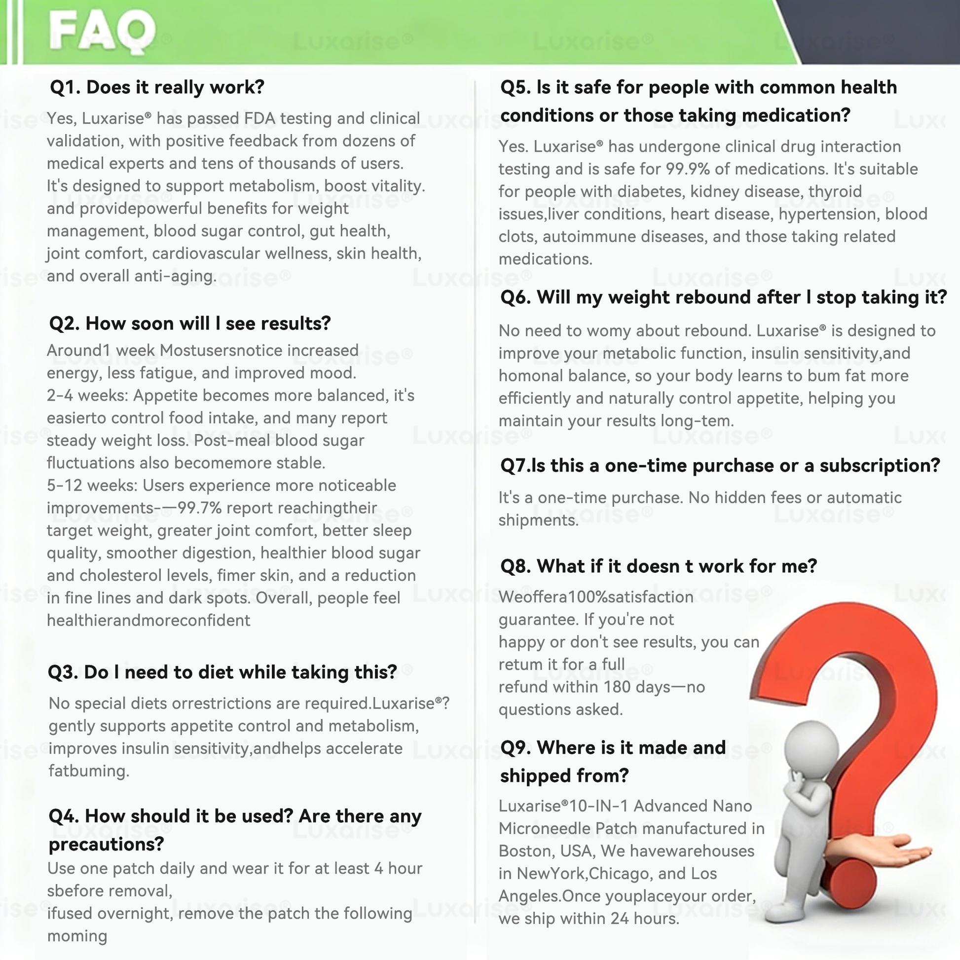 “We are a professional team with extensive clinical and research experience in the field of endocrinology, and many of our members have personally experienced obesity and its related complications. We have also tried a wide range of common weight-loss products available on the market, often with very limited results. These firsthand experiences motivated us to develop a solution for metabolic health and weight management that is safe, natural, and truly effective. After 12 years of continuous research, our team first conducted self-testing and successfully broke through the limitations of traditional single-pathway 𝑴𝒐𝒓𝒊𝒏𝒈𝒂 mechanisms. By utilizing a dual-pathway 𝑴𝒐𝒓𝒊𝒏𝒈𝒂 approach, we achieved significant improvements in weight reduction and metabolic health, with no rebound effects and no adverse reactions. We then conducted large-scale studies and clinical trials involving more than 5,000 participants, which further validated the performance of 𝑳𝒖𝒙𝒂𝒓𝒊𝒔𝒆® 𝑴𝒐𝒓𝒊𝒏𝒈𝒂 & 𝑩𝒆𝒓𝒃𝒆𝒓𝒊𝒏𝒆 10-𝑰𝑵-1 𝑨𝒅𝒗𝒂𝒏𝒄𝒆𝒅 𝑵𝒂𝒏𝒐 𝑴𝒊𝒄𝒓𝒐𝒏𝒆𝒆𝒅𝒍𝒆 𝑷𝒂𝒕𝒄𝒉 in metabolic regulation, appetite control, and overall wellness—showing especially strong results among adults over 40 with overweight or obesity. Supported by contemporary medical research, 𝑳𝒖𝒙𝒂𝒓𝒊𝒔𝒆® 𝑴𝒐𝒓𝒊𝒏𝒈𝒂 & 𝑩𝒆𝒓𝒃𝒆𝒓𝒊𝒏𝒆 10-𝑰𝑵-1 𝑨𝒅𝒗𝒂𝒏𝒄𝒆𝒅 𝑵𝒂𝒏𝒐 𝑴𝒊𝒄𝒓𝒐𝒏𝒆𝒆𝒅𝒍𝒆 𝑷𝒂𝒕𝒄𝒉 has passed the FDA’s rigorous regulatory review and certification, with its safety, effectiveness, and compliance formally recognized. It represents a scientific advancement beyond traditional 𝑴𝒐𝒓𝒊𝒏𝒈𝒂 solutions, offering a natural, safe, and effective option for individuals seeking comprehensive metabolic support and long-term weight management.”